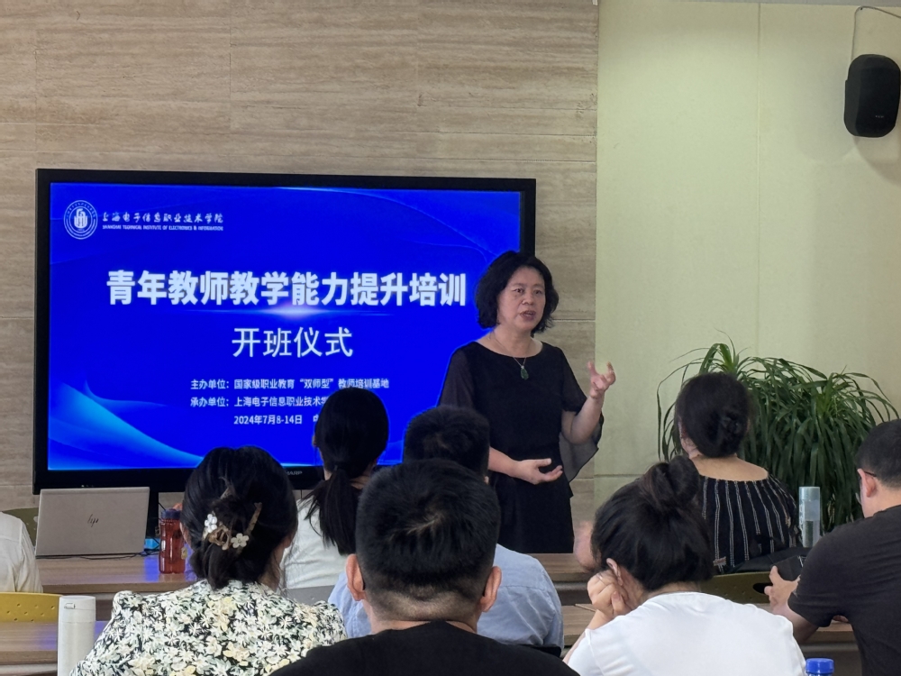 7月8日,国家级职业教育“双师型”培训——“青年教师教学能力提升”项目在我校奉贤校区A205会议室举行开班仪式。此次培训由国家级职业教育“双师型”培训基地主办,上海电子信息职业技术学院承办。来自喀什理工职业技术学院、安徽国防科技职业学院等职业院校的32名电子信息大类专业骨干教师参加培训。