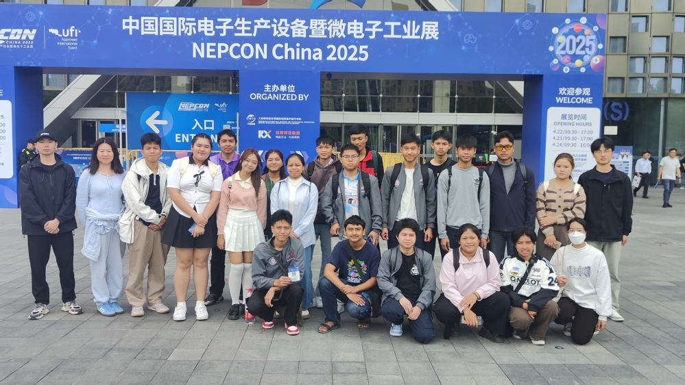 4月23日下午,机械学院专任教师郝淼带领20名泰国留学生和3名志愿者参观了中国国际电子生产设备暨微电子工业展NEPCON China2025,近距离体验前沿科技。