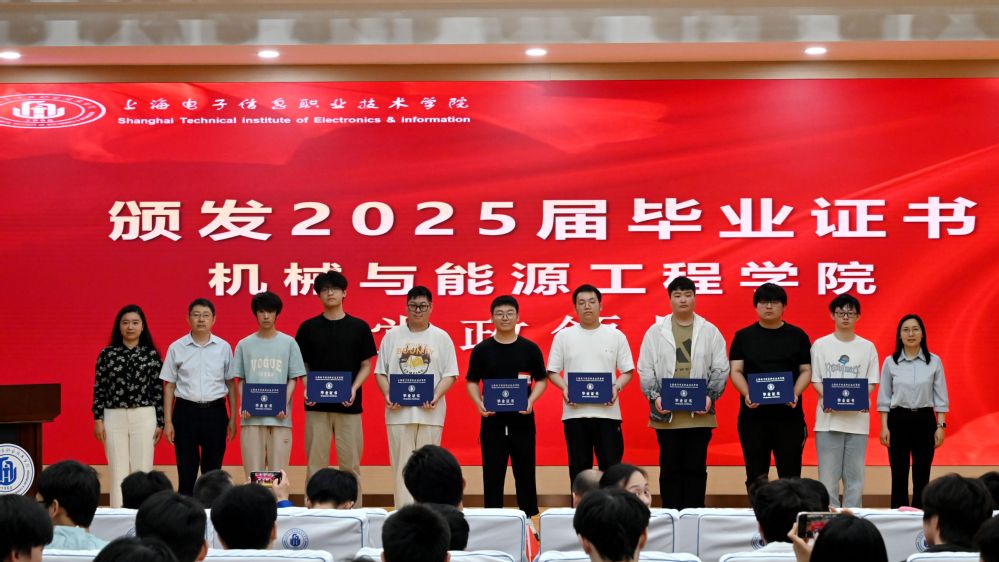 6月27日上午,机械与能源工程学院2025届学生毕业典礼在奉贤校区C108报告厅隆重举行。学校党委副书记、纪委书记丁磊,机械学院党政领导、办公室主任、党总支办公室主任、教学管理办公室主任、教研室主任、实训室主任、实习指导教师、辅导员、企业导师代表、校友代表以及2025届全体毕业生出席典礼。