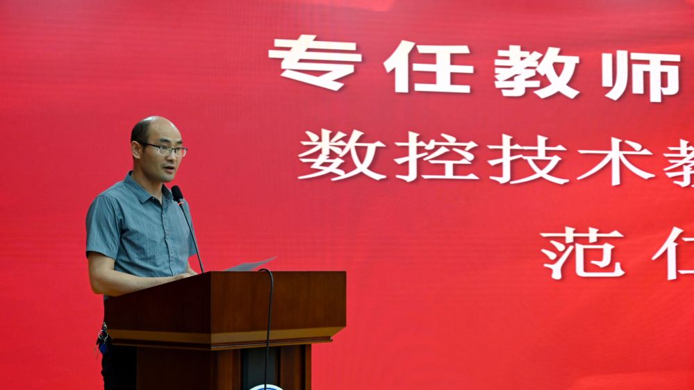 数控技术教研室主任范仁杰作为专任教师代表为毕业生送上殷切寄语。他勉励同学们:要博爱感恩,奋斗进取,做服务人民的奉献者;要终身学习,与时俱进,做时代的同行者;要直面困难,保持乐观,做抓住机遇的挑战者。