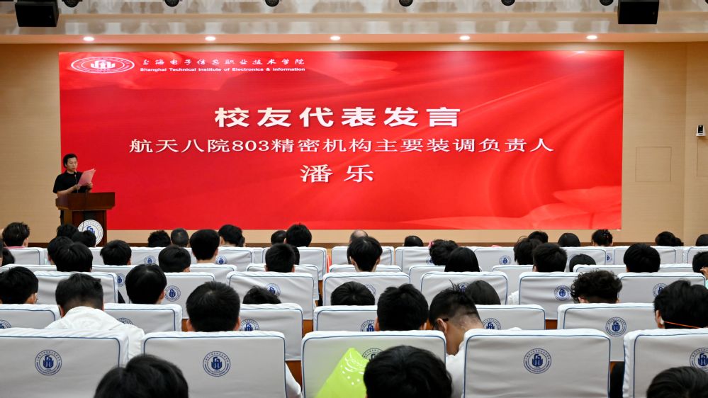 航天八院803所精密机构主要装调负责人潘乐作为优秀校友代表,分享了他的成长感悟。他深情回忆了校园时光,鼓励学弟学妹们弘扬精益求精的工匠精神,珍惜同窗情谊,并常回母校看看。