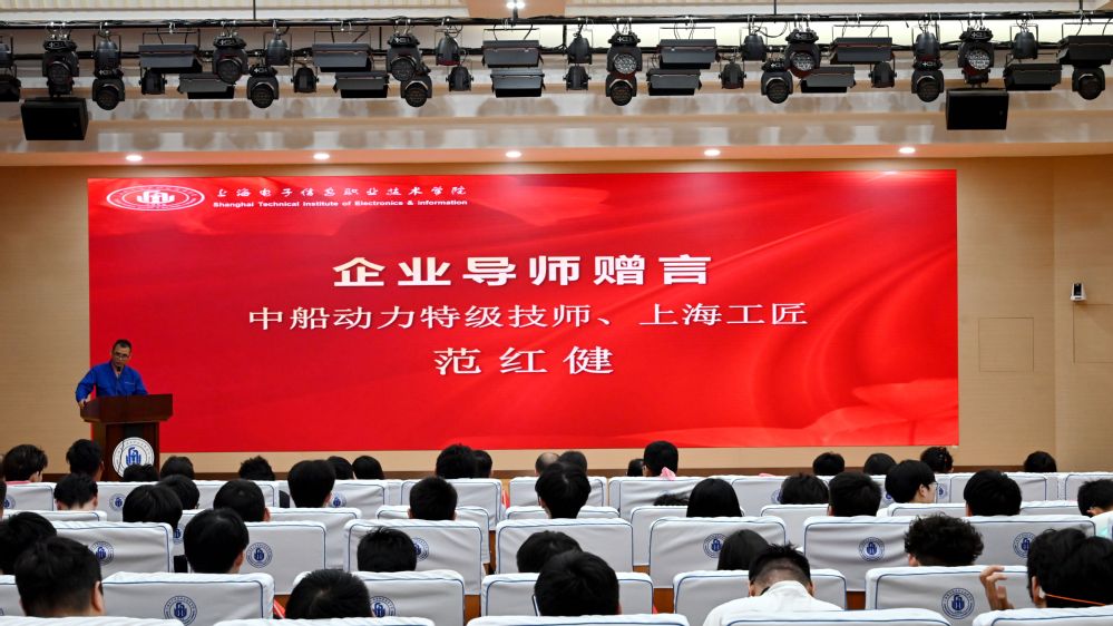 中船动力集团特级技师、“上海工匠”范红健,以企业导师身份倾囊相授,结合自身奋斗轨迹向毕业生分享进阶成才的宝贵经验。他勉励同学们要具备“忍耐”的定力,耐得住“孤独”的钻研,付出不懈的“努力”,并葆有持之以恒的“坚持”。