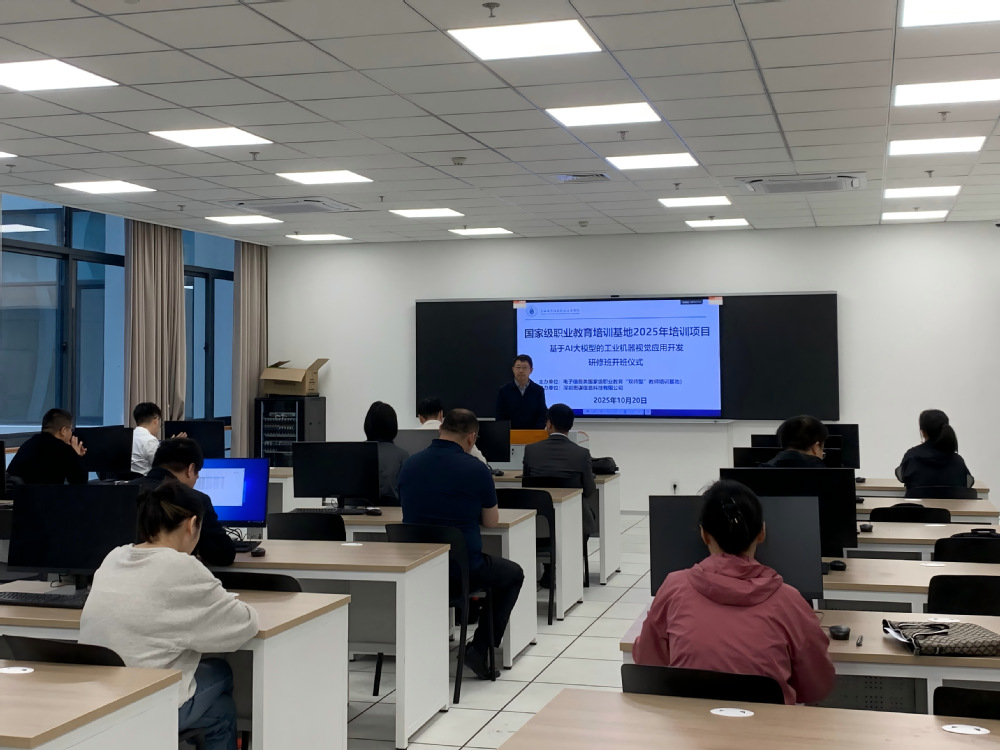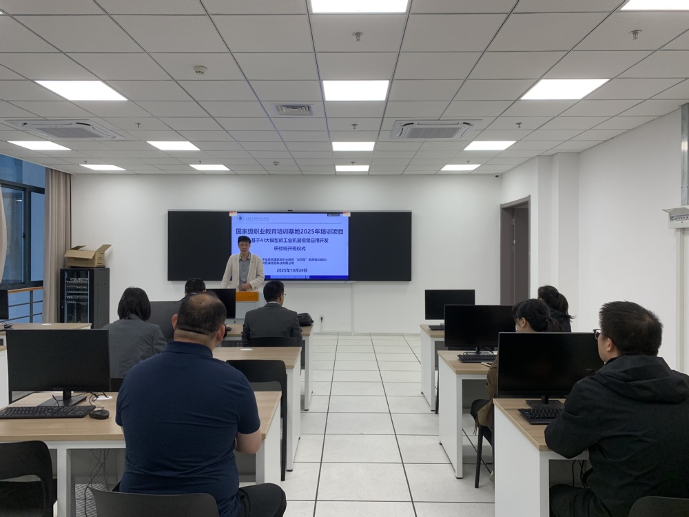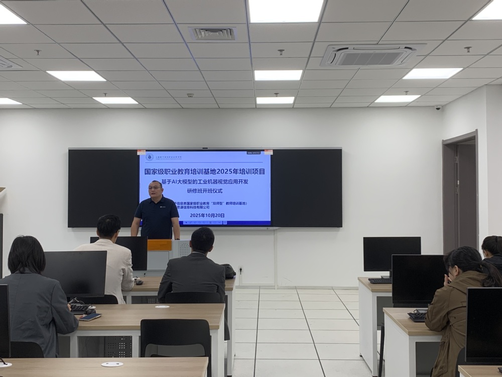 10月20日,2025年“基于AI大模型的工业机器视觉应用开发研修班”在奉贤校区正式开班。研修班由我校电子信息类国家级职业教育“双师型”教师培训基地主办,深圳思谋信息科技有限公司协办。来自全国多所职业院校的骨干教师齐聚一堂,将完成为期七天的系统学习。本次培训旨在提升职业院校教师在工业机器视觉领域的教学与实践能力,培养一支高技能的“种子”教师队伍。
