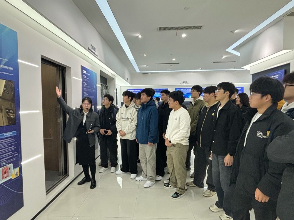 活动上,师生参观了产品展示厅,走进钣金车间、金工车间等场所,真实感受企业的工作氛围。在产品展示厅里,学员们被上海三菱电梯的多样化产品线所震撼。陪同人员向学生们详细介绍了三菱电梯的特点和优势,当了解到上海中心大厦内“最高速电梯”以20米每秒攀升600米高空时,同学们不仅震撼于技术的高度,更读懂了“中国智造”背后那份对安全与品质的追求。