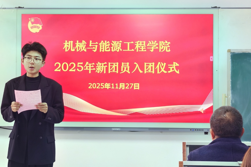 11月27日,机械学院在N503教室举行2025年下半年新团员入团仪式。学院团总支负责人、辅导员代表及30余名新老团员参加。
