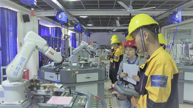 实训室使用面积约300㎡,目前主要设备有:ABB机器人教学实训平台6套、ABB机器人工作站13台(可组成2条生产线)、汇博工业机器人国赛平台1套、三菱工业机器人生产线实训平台2套,1+X证书工业机器人操作与运维职业技能等级考试配套设备10套,配备完善教学监控录播系统,设备总价值约1000万元